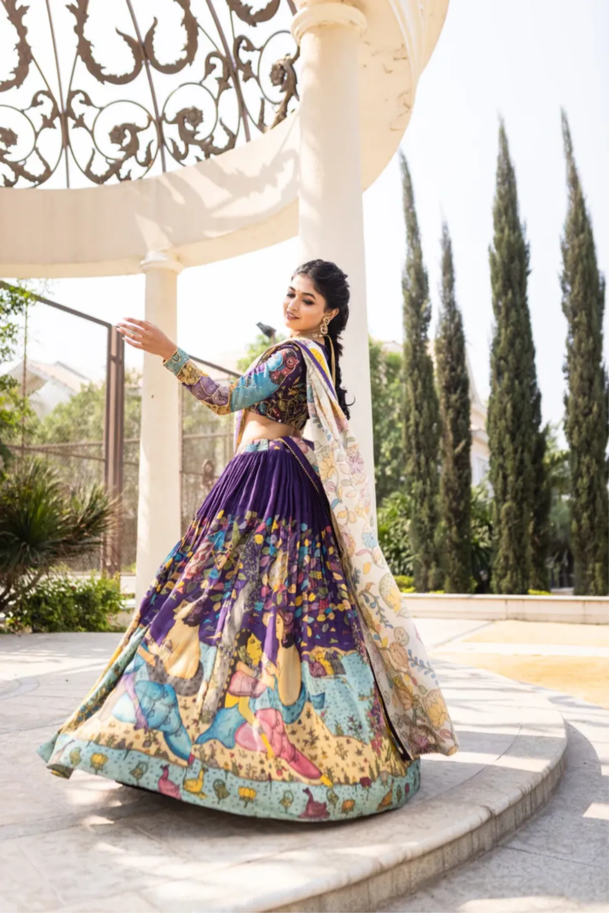 Ethnic Kalamkari Lehenga with Intricate Nature-Inspired Patterns.