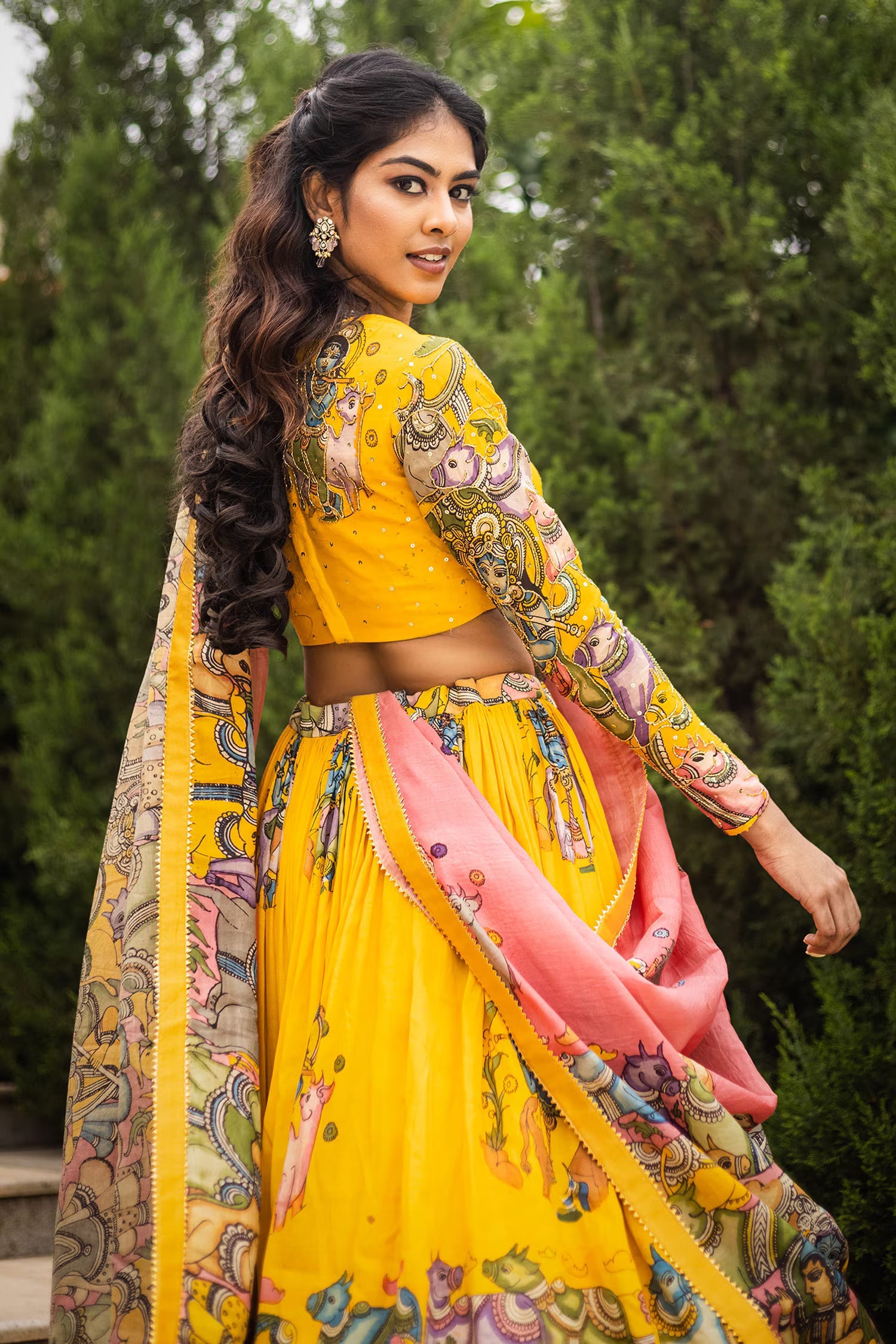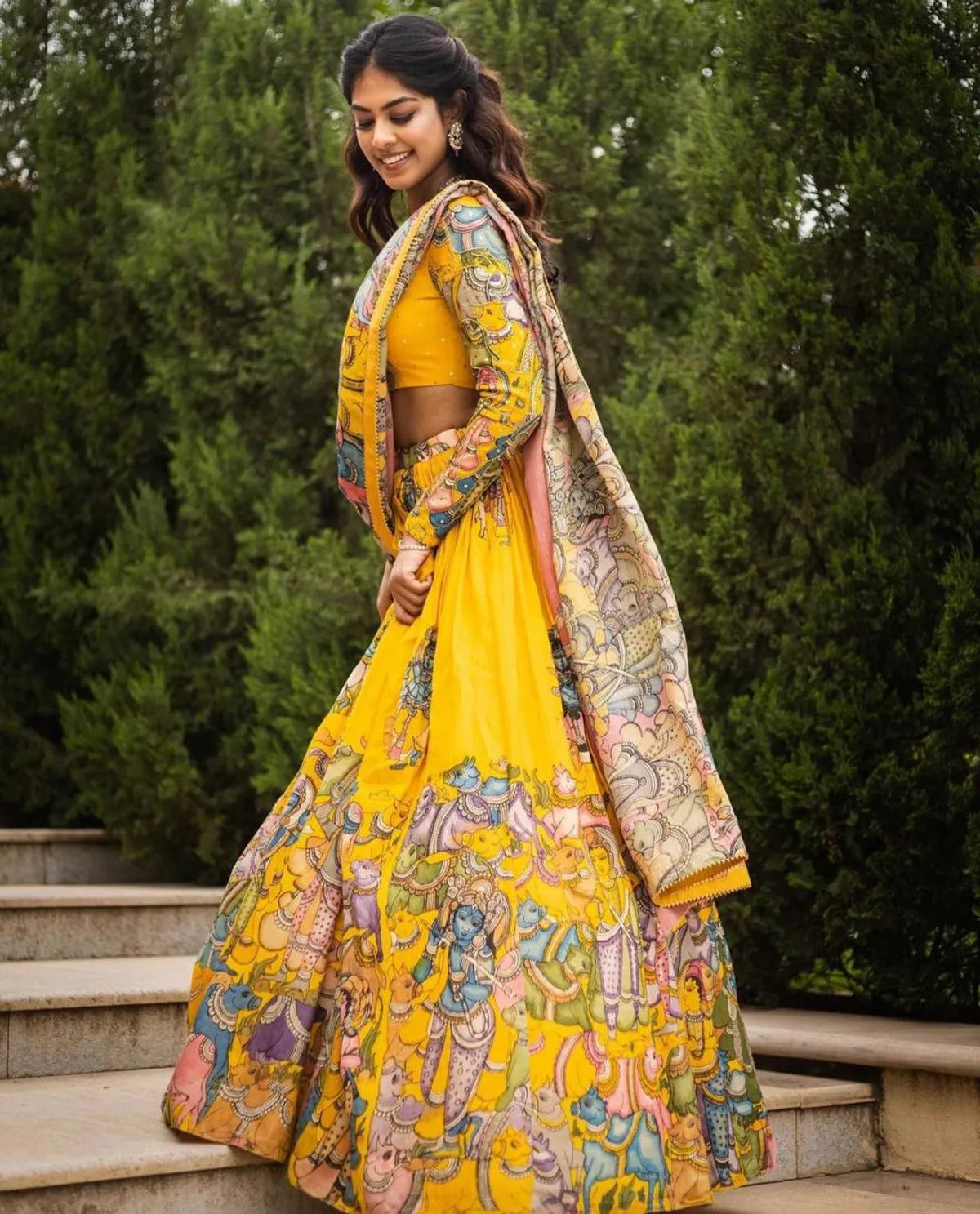 🌟 Kalamkari Printed Yellow Lehenga Choli 🌟