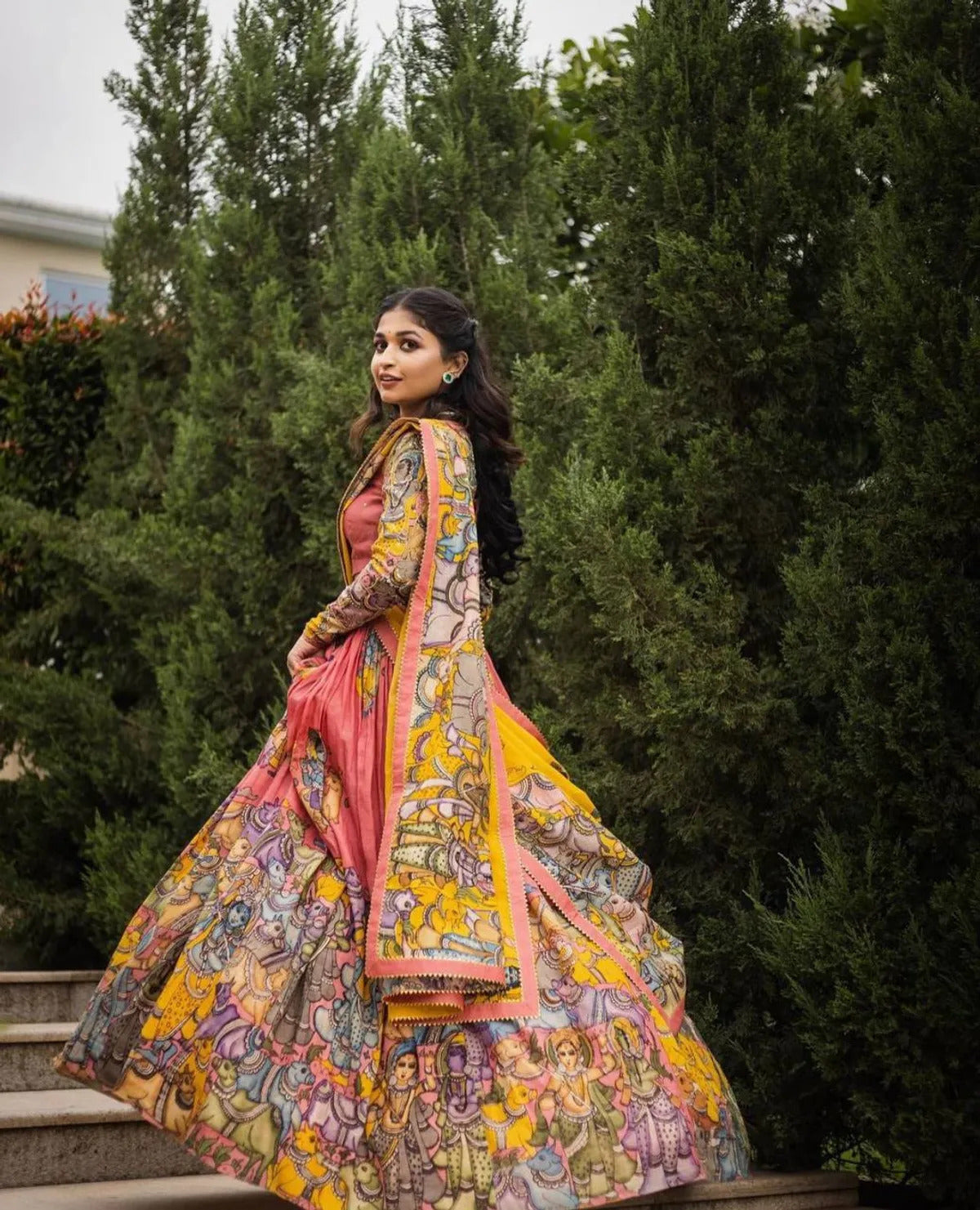 Elevate your ethnic wardrobe with our stunning Kalamkari Printed Lehenga Choli, designed for elegance and comfort. Perfect for festive occasions, weddings, or special celebrations!