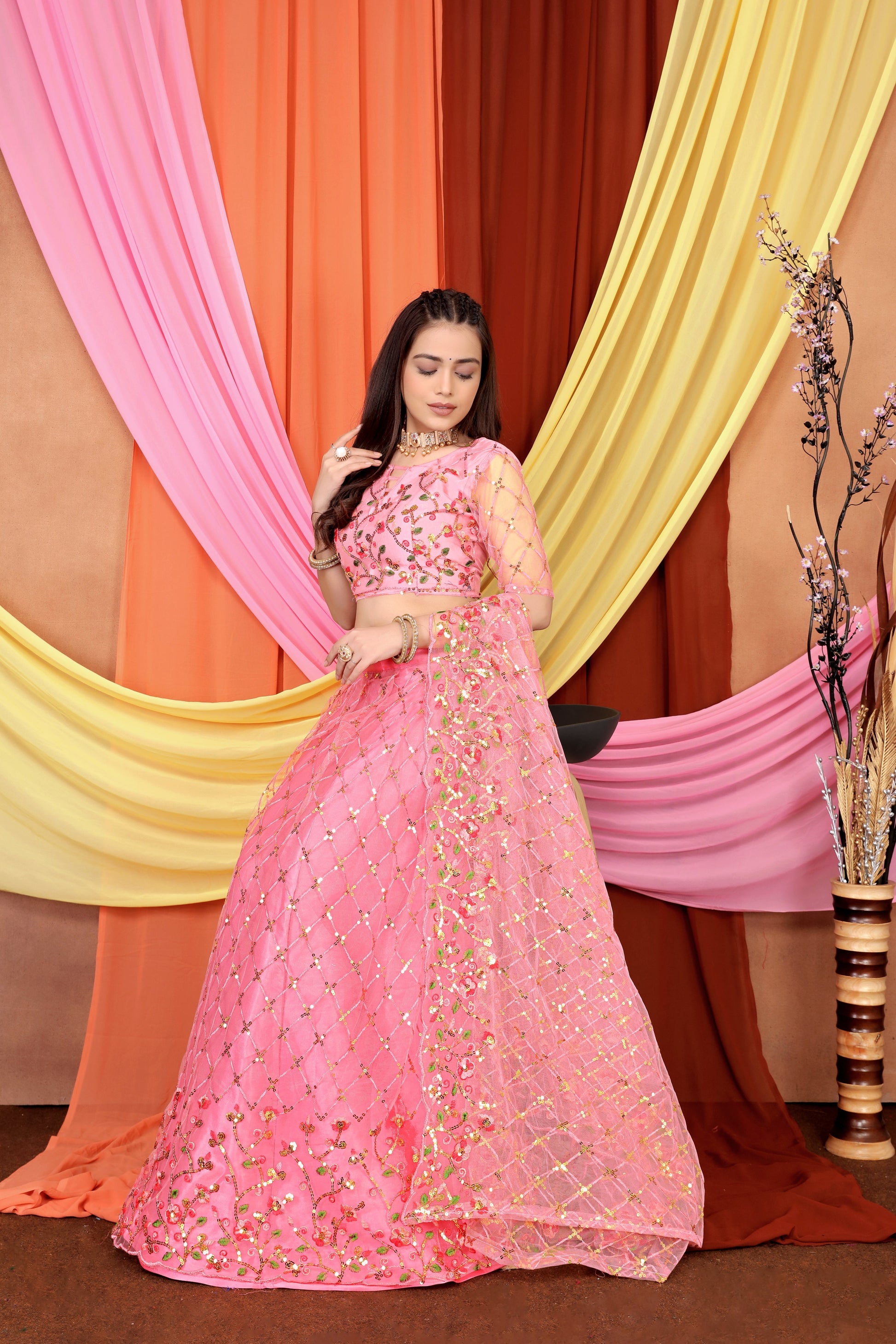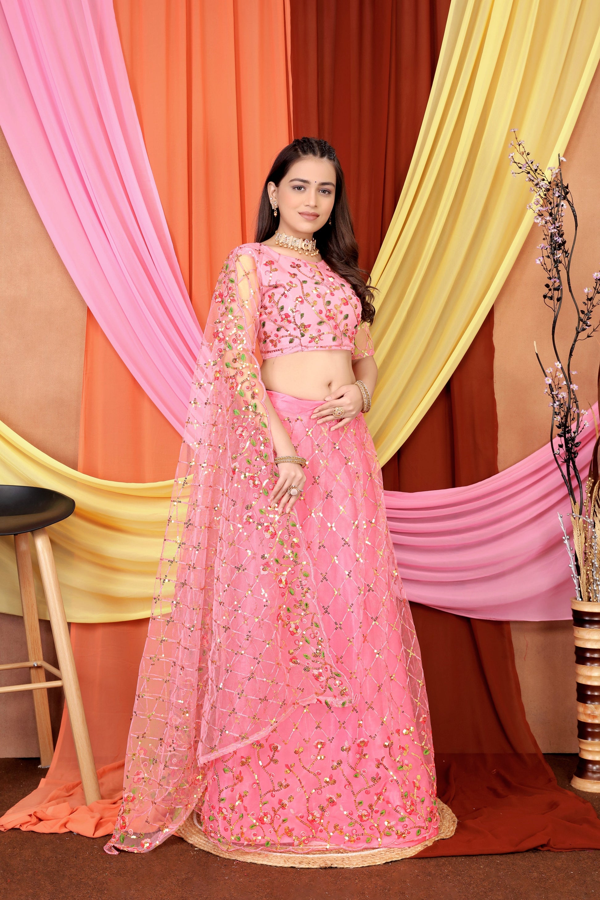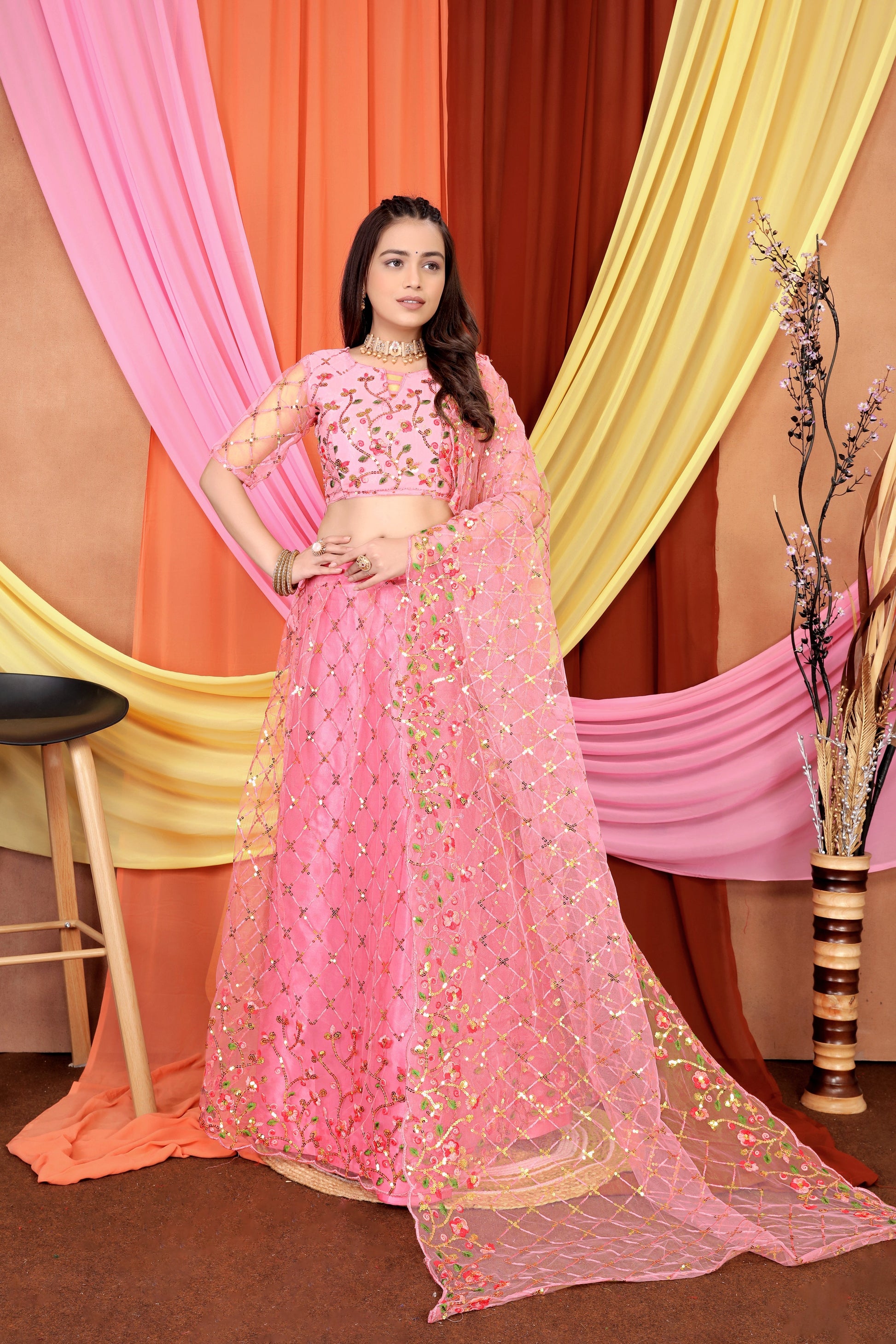 New Party Wear Sequance Lehenga Choli Full Heavy & Fancy Color Full Sequence Work In Lehenga Choli With Beautiful Sequance Worked Blouse {unstitched}. It is made of Net and Satan Material . ✔ The Lehenga Waist Size is 44 Inch And Lehenga Length Size is 44 Inch. Duppatta Length Size is 2.5 meter. Lehenga with Sequence Work 0.80 meter Blouse piece. ★Lehenga Work Type : - 5mm Fency Color Full Sequence Work.✔ ★ Lehenga with Blouse Piece :- Beautiful Sequance Worked One of the most graceful costumes made from unstitched.fabric-the Lehenga the much loved choice for most Indian women can be worn in so many different ways. A Traditional Indian Wear Also Known As Chaniya Choli or Ghagra Choli for Women. This Lehenga Bear A Sophisticated Look And Enhance The Beauty Of The Women Which Can Be Worn For Functions, Festivals, Parties And Even Wedding Also. You Will Be A Center of Attraction In The Event Once You Ware It. This Lehenga Choli Is Comes With Un Stitched Material So It Can Be Stitched According To Your Taste, Preference And Style Also.