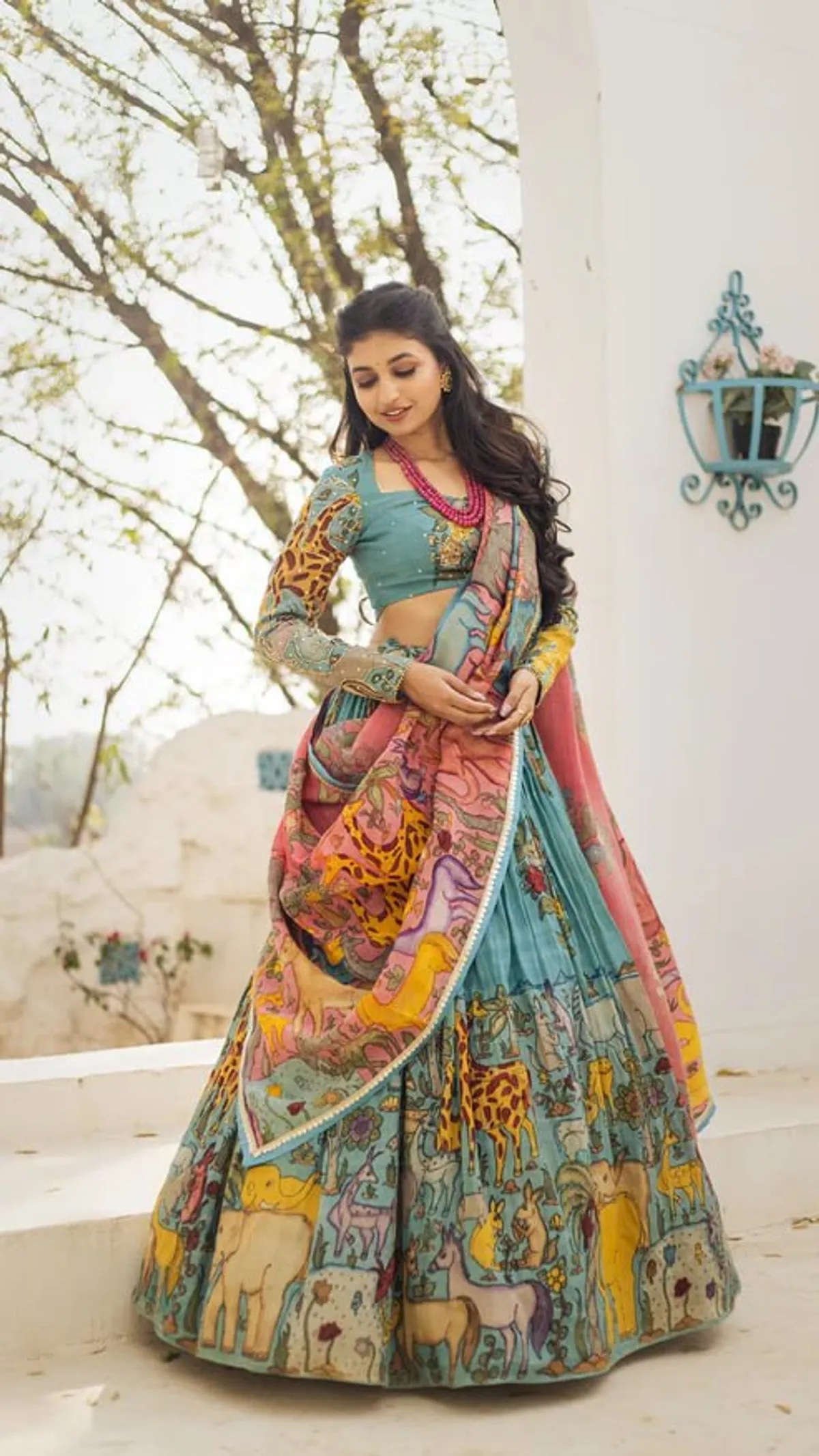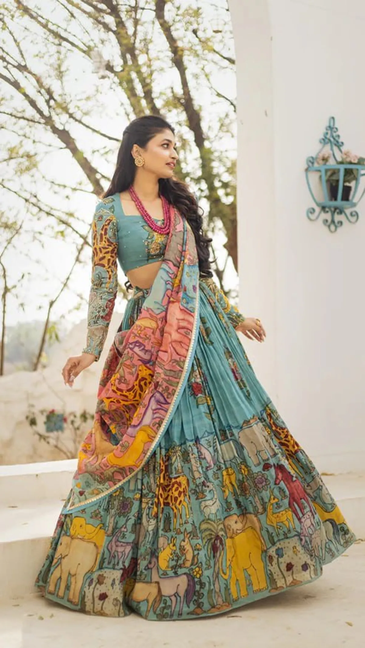 Elevate your ethnic wardrobe with our stunning Kalamkari Printed Lehenga Choli, designed for elegance and comfort. Perfect for festive occasions, weddings, or special celebrations!