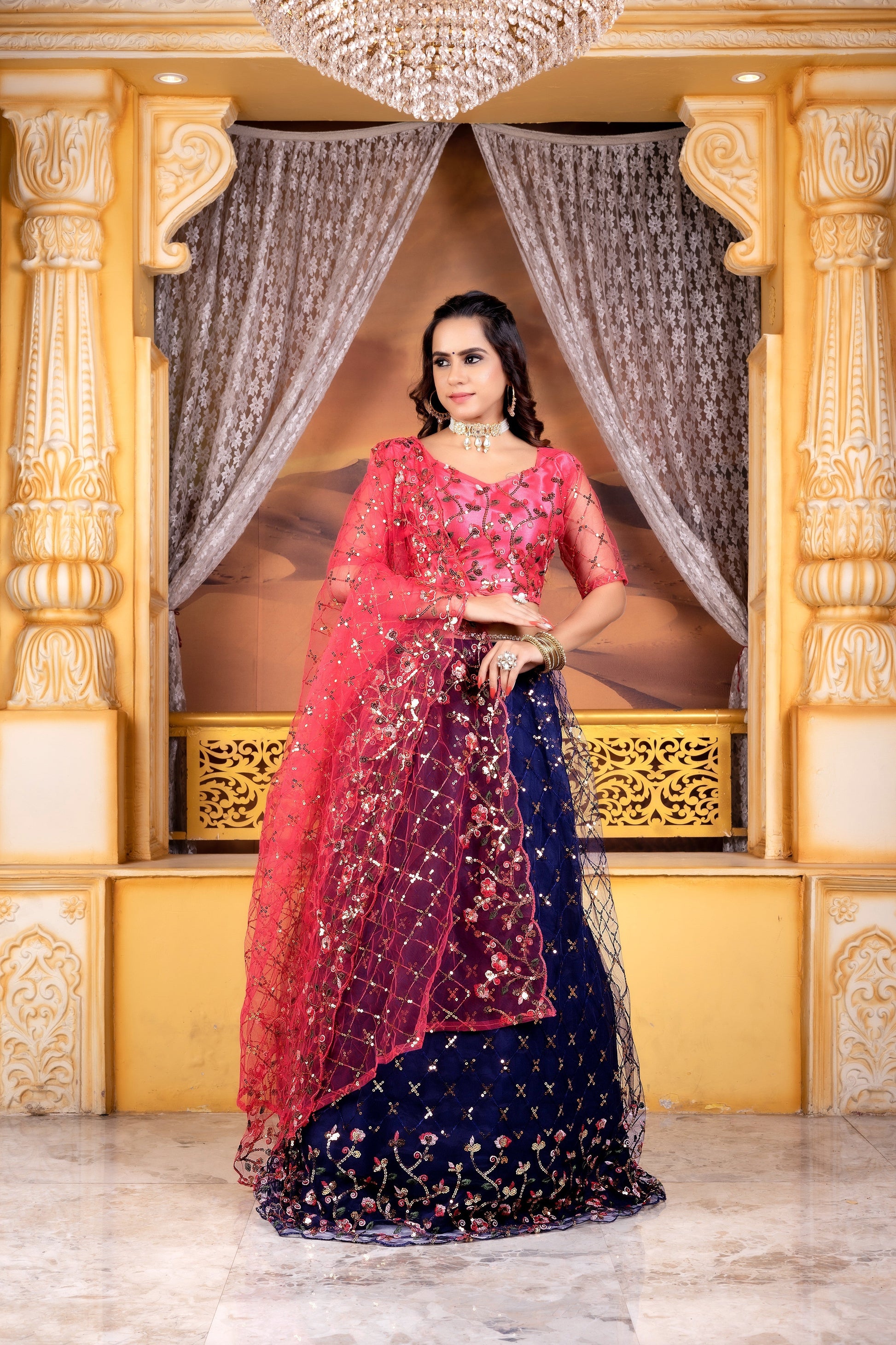 It is made of Net and Satan Material . The Lehenga Waist Size is 44 Inch And Lehenga Length Size is 44 Inch. Duppatta Length Size is 2.5 meter. Lehenga with Sequence Work 0.80 meter Blouse piece. Lehenga Work Type : - 5mm Fency Color Full Sequence Work. Lehenga with Blouse Piece :- Beautiful Sequance Worked One of the most graceful costumes made from unstitched.fabric-the Lehenga the much loved choice for most Indian women can be worn in so many different ways. A Traditional Indian Wear Also Known As Chaniya Choli or Ghagra Choli for Women. This Lehenga Bear A Sophisticated Look And Enhance The Beauty Of The Women Which Can Be Worn For Functions, Festivals, Parties And Even Wedding Also. You Will Be A Center of Attraction In The Event Once You Ware It. This Lehenga Choli Is Comes With Un Stitched Material So It Can Be Stitched According To Your Taste, Preference And Style Also.